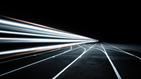 A stunning long exposure image showcasing dynamic light trails on a dark track, emphasizing a sense of speed and motion while maintaining an artistic and minimalistic vibe.
