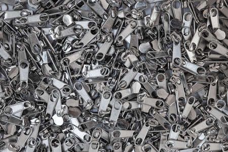 Metal zippers. Group of items of metal parts for insertion into the sewing industry