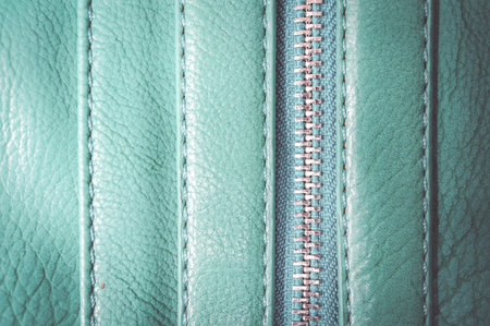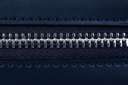 The closeup shot of the zipper of a blue leather jacket - perfect for background