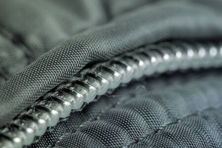 Zipper slider on. Buttoning and unfastening clothes. Close-up, selective focus