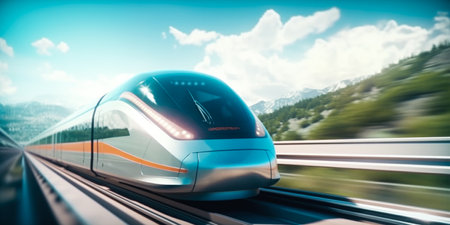 A magnetic levitation train gliding smoothly above the tracks with minimal friction AI generated