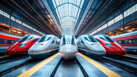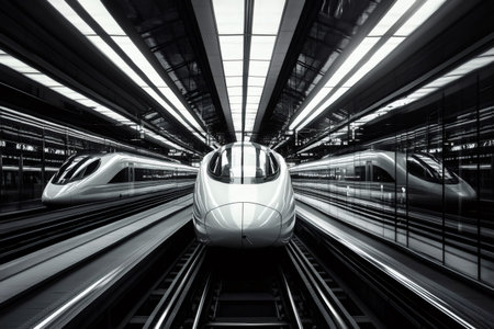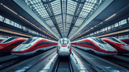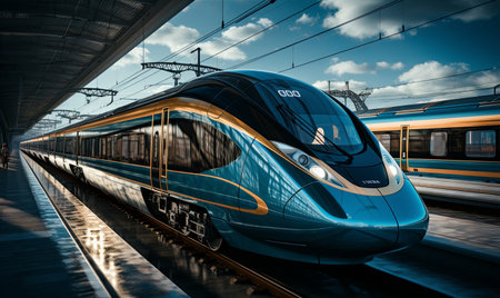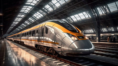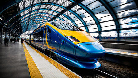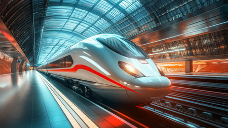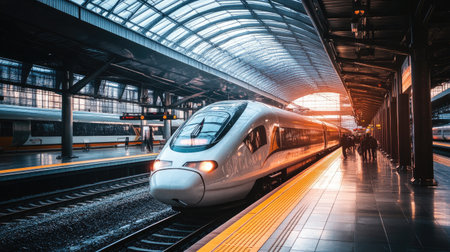 Experience high-speed rail travel with this modern train gliding through the station. Fast, efficient, and perfect for your next journey.