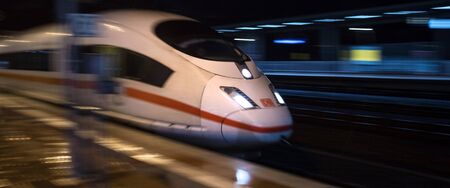 siegburg, North Rhine-Westphalia/germany - 28 11 19: ICE train passing siegburg germany at night panorama