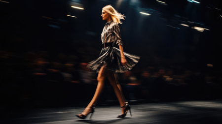 Elegant Blonde Model Strutting Down High Fashion Runway