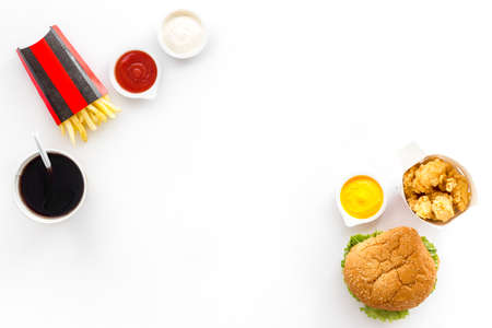 Fast food background. Hamburger chicken nuggets and french fries