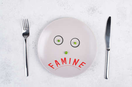 Famine is standing on the plate, food shortage and starving because of the war and inflation, political issue, face with green peas
