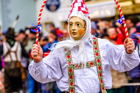 Germany, Lahr - JANUARY 17: Participants in costumes perform a street procession Carneval Fasnacht January 17, 2016 in the city of Lahr, Germany. Traditionally, the festive and cultural carnival procession through the streets of cities and towns in German
