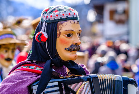 MITTENWALD, GERMANY - FEBRUARY 27: Machkera is a traditional disguise with large wooden larvae, here shown on Feb 27, 2017 in Mittenwald