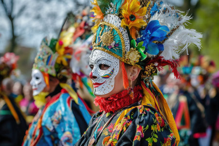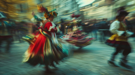 Stilt walkers in vibrant costumes create a captivating spectacle at carnival celebrations worldwide Their towering presence and colorful attire draw eyes and smiles from all ages, adding a touch of whimsy and excitement to these iconic events AI Generative
