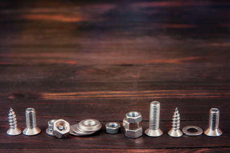 Mixed screws and nails. Industrial background. Home improvement.bolts and nuts.Close-up of various screws. Use for background, top view.