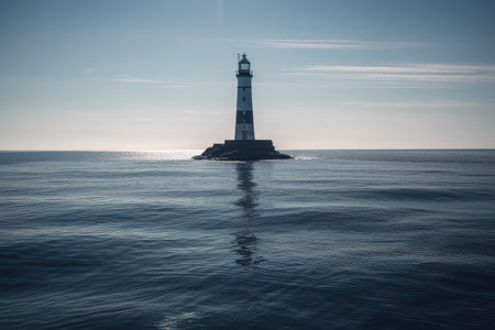 Isolated lighthouse on rocky outcrop in the sea Tranquil and resilient scene
