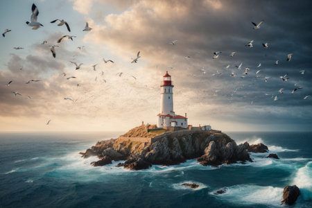 A majestic lighthouse standing tall on a remote island
