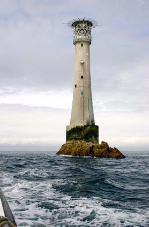 lighthouse on small island, viewed from boat
