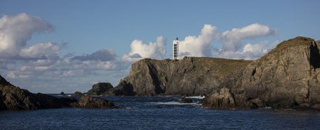 A lighthouse on South Stack, an island situated just off Holy Island on the northwest coast of Anglesey in Wales, UK