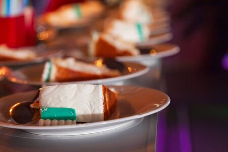 on selective focus of Cake for a birthday celebration with sweets on a pie plate Brown