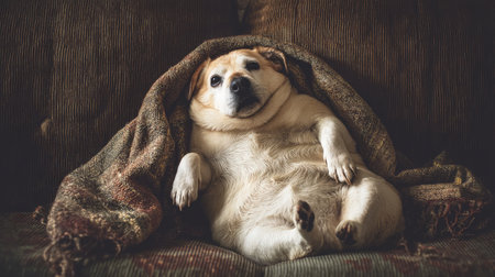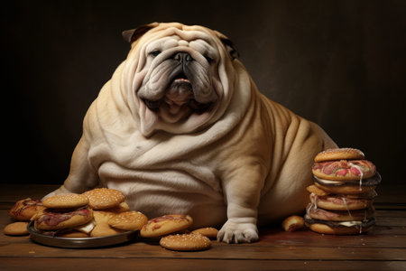 Affectionate Fatty dog pet cute. Animal food. Generate AI