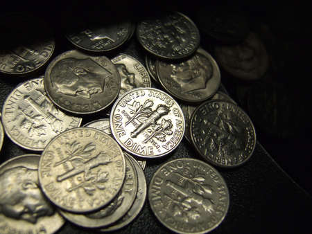 pile of coins (US 5¢ on the top)
