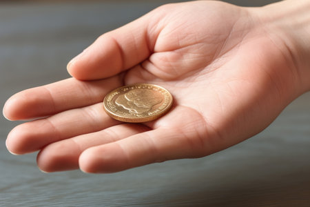 photographed close-up of a quarter of the US dollar in the hands of a man, defocused
