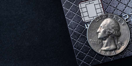 Various American money, Washington quarter dollar or 25-cent silver coin. Assorted Usa Coins. Money, Financial, Business Growth concept. Finance background.