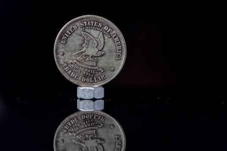 A rare US coin photographed against a dark background close-up.