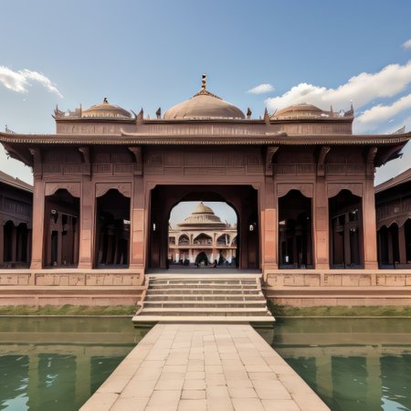 The intricate patterns of a South Asian mosque with a clear sky above, perfect for spiritual content.