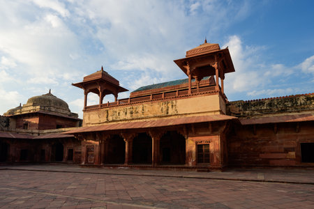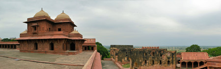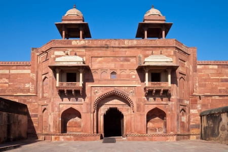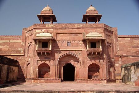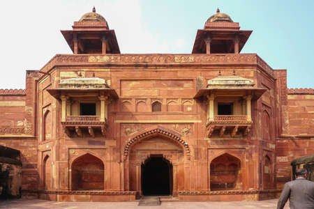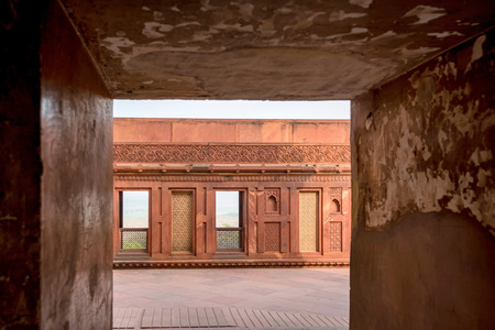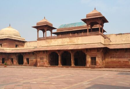Old red sandstone palace at the Mughal city of Fatehpur Sikri in Agra, Uttar Pradesh, India