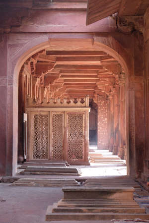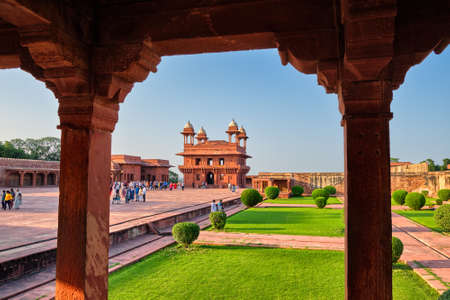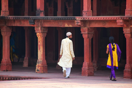 Fatehpur Sikri, India - October 14, 2010: People among the arches of Fatehpur Sikri