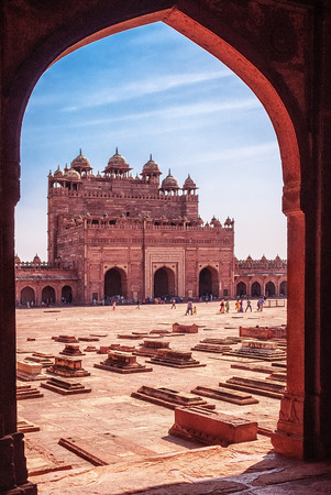 Jama Masjid mosque courtyard archway at the ancient city Fatehpur Sikri, Uttar Pradesh state, India