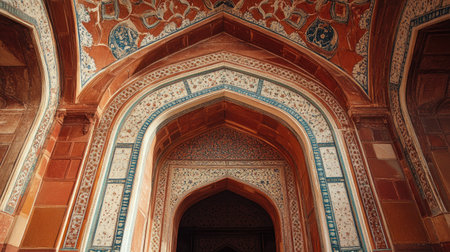Taj Mahal Tadsch Mahal Great Gate in Agra India red amazing architecture and entrance of the most beautiful building.