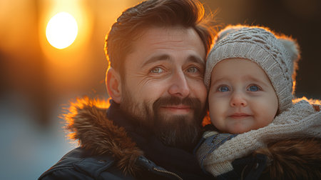 A heartwarming image captures the tender bond between a loving father and his baby son Bathed in soft, natural light, the scene evokes pure joy, unconditional love, and cherished moments The close-up shot highlights the father's protective instincts and the sweet smiles shared between father and child, creating a timeless AI Generative