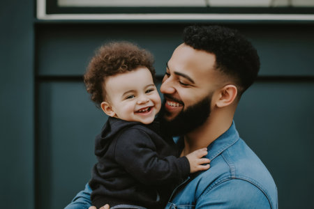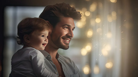 Happy father and his baby son sharing laughter and enjoying a joyful moment, celebrating their loving bond and family connection