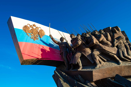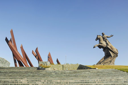 MAGNITOGORSK, RUSSIA - SEPTEMBER 27: Monument Rear-front a large sculpture on September 27, 2011 in Magnitogorsk, Russia.