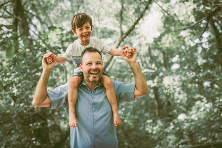 Father and child having a good time, professional color grading, cinematic tones, feeling fatherhood concept, happy kids
