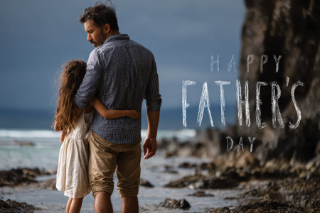 Celebrating fathers day by the ocean with a warm embrace between father and daughter