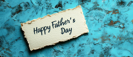 A handwritten-style Happy Father Day message on a textured blue background, evoking warmth and appreciation for fathers. The rustic paper effect adds a nostalgic touch