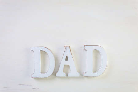 White letters DAD on a wood background.