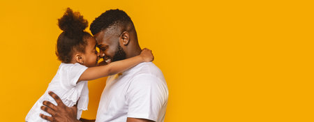 Father and Daughter Embracing Joyfully Against Yellow Background