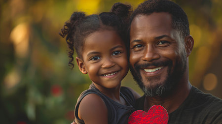 On Father's Day, a happy daughter hugs her dad with a heart in her hands