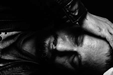 unshaven handsome guy suffering from depression. Depressed state due to lockdown