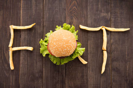 Unhealthy and junk food. Different types of fast food on the table, close up