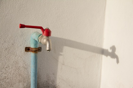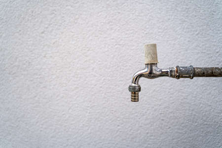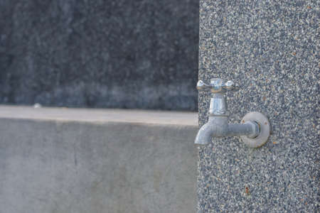 Water tap on wall in ourdoor. Front view with copy space.