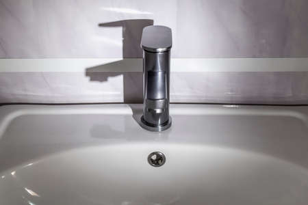 Close up of a water spigot in a clean bathroom. Water saving.
