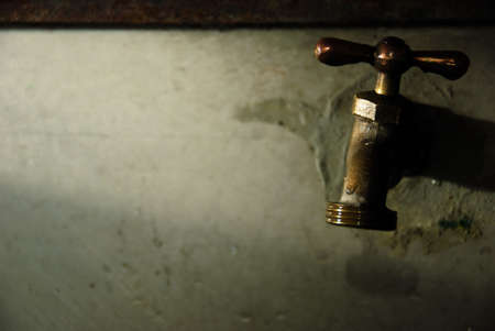 Old vintage water tap with a small drop of water dripping from it, symbolising the Global problem of lack of water.