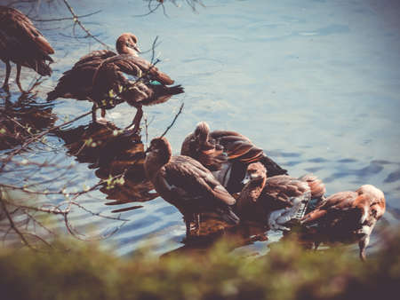Ducks cleaning in small lake in Dusseldorf