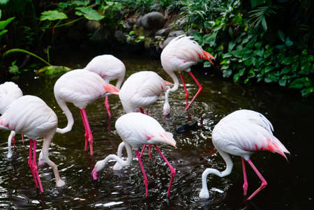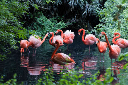 Group of pink flamingos in the jungle. high quality photo