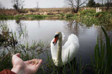 Swan in spring, beautiful waterfowl Swan on the lake in the spring, lake or river with a Swan