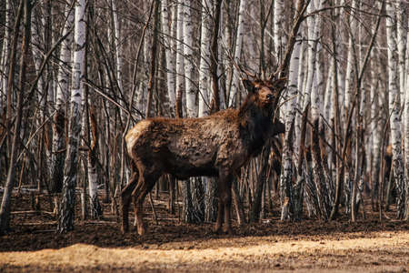 Maral deer in the forest, close up view.
