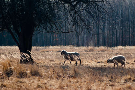 Sheeps of a field. Sunny summer day.