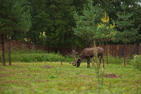Close-up of a deer head in summer on a farm in Jelgava, Latvia.