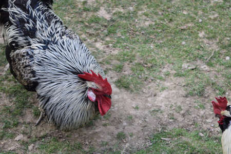 Two roosters shortly before the fight for the prettiest hen at Animal Park Bretten, Germany